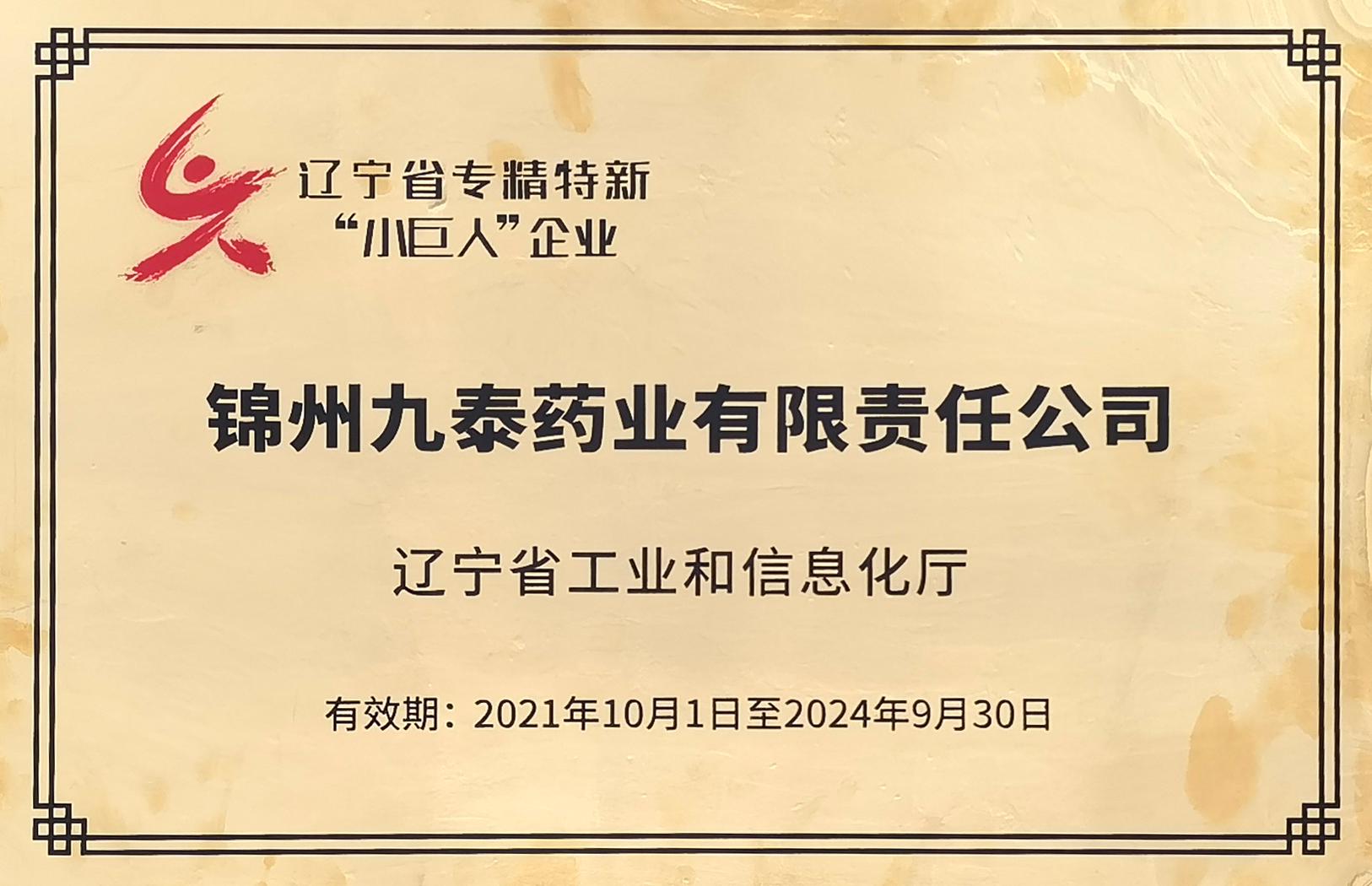 喜賀九泰藥業(yè)榮獲2021...