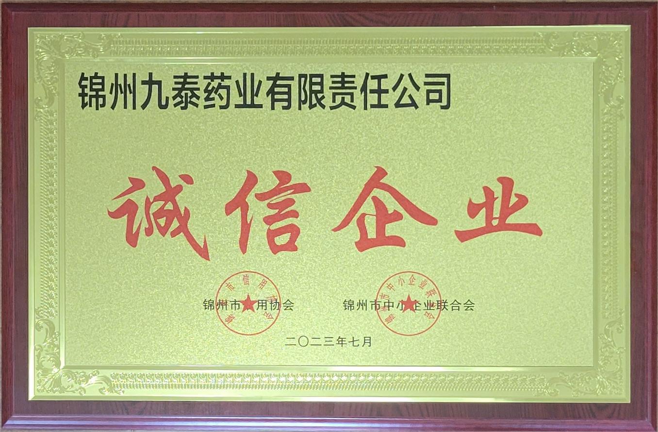 7月17日,在錦州市中小企業(yè)聯(lián)合會(huì)、錦州市信用協(xié)會(huì)誠(chéng)信會(huì)員企業(yè)表彰大會(huì)上,錦州九泰藥業(yè)有限責(zé)任公司被命名為“誠(chéng)信企業(yè)”榮譽(yù)稱(chēng)號(hào)。